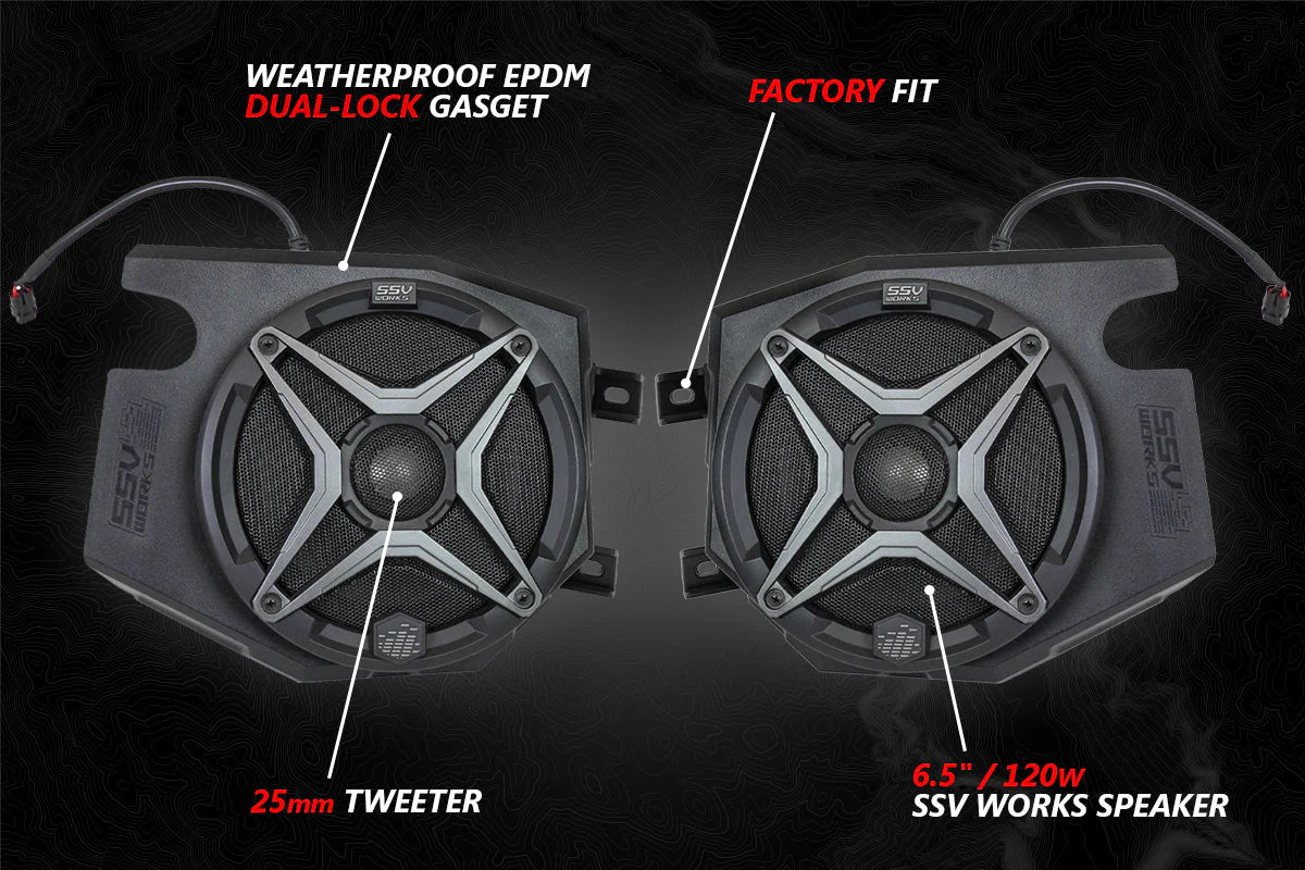 - 6.5” Front Kick Speaker-Pods w/SSV Works Speakers