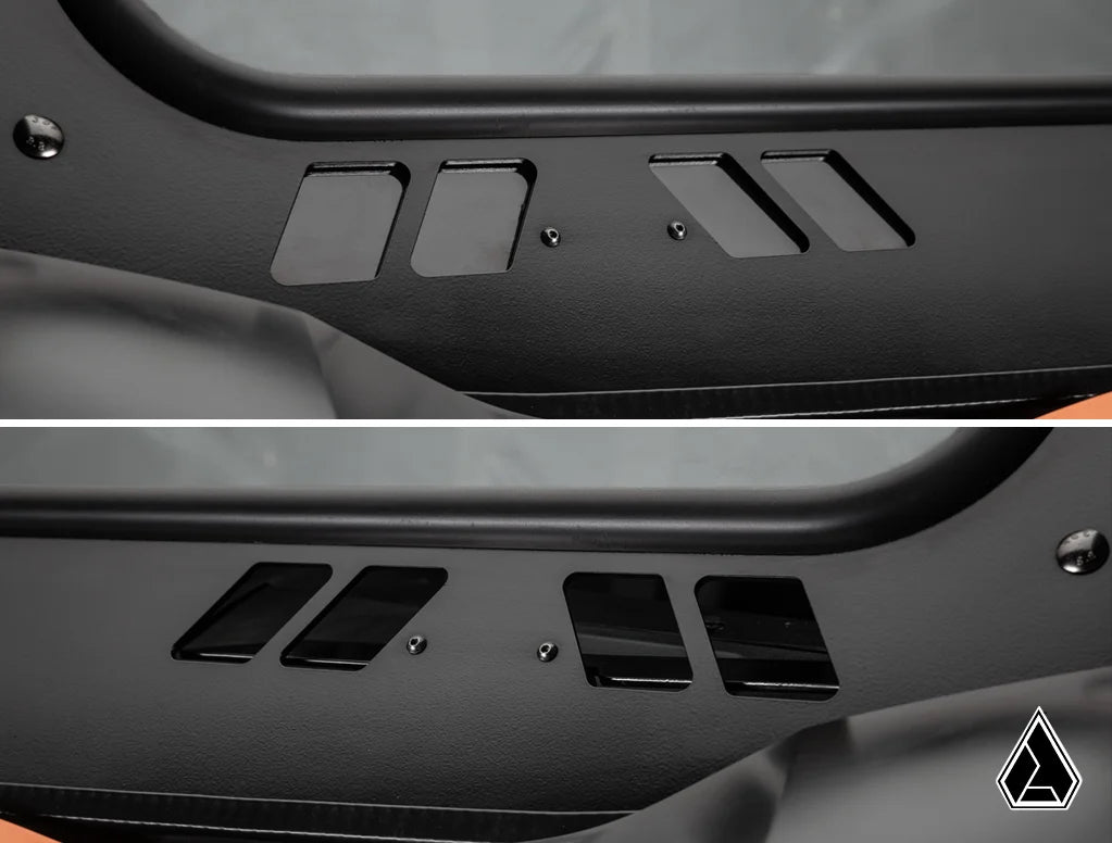 Comfort and good looks don't get ignored just because you're fierce and battle-ready. That's why this windshield is equipped with two vents for better airflow, two positions for a manual wiper, and the badass emblem of Assault Industries.