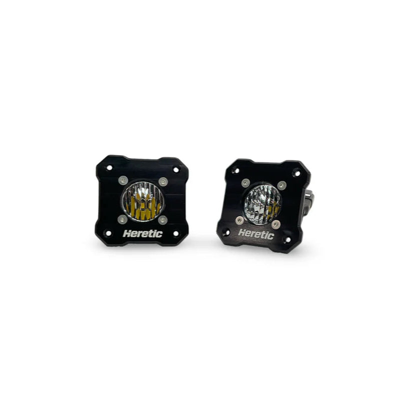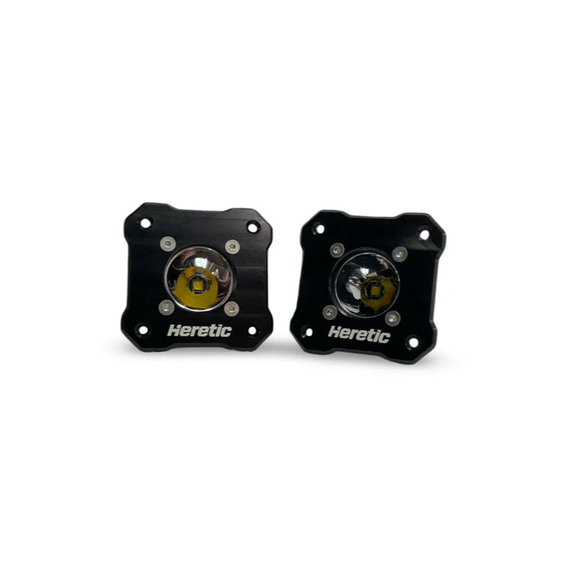 The Heretic BA-1R Flush Mount LED Light Pod is our newest pod light used for various applications from an optimal chase light to a fog light and beyond. They are Designed, Assembled, Supported, shipped in Centerville, Utah and covered by our lifetime warranty. These high-performance LED pod lights are housed in CNC machined aircraft-grade aluminum and outfitted with best-in-class circuit boards that allow temperature control and long-lasting, far-reaching light. The BA-1R LED Light Pod is recommended on the front or rear bumpers of trucks, jeeps, SUVs, and UTVS. Customize Your Beam Pattern: Spot or Flood. They can also be used on the sides and rear of roof racks as a chase light.