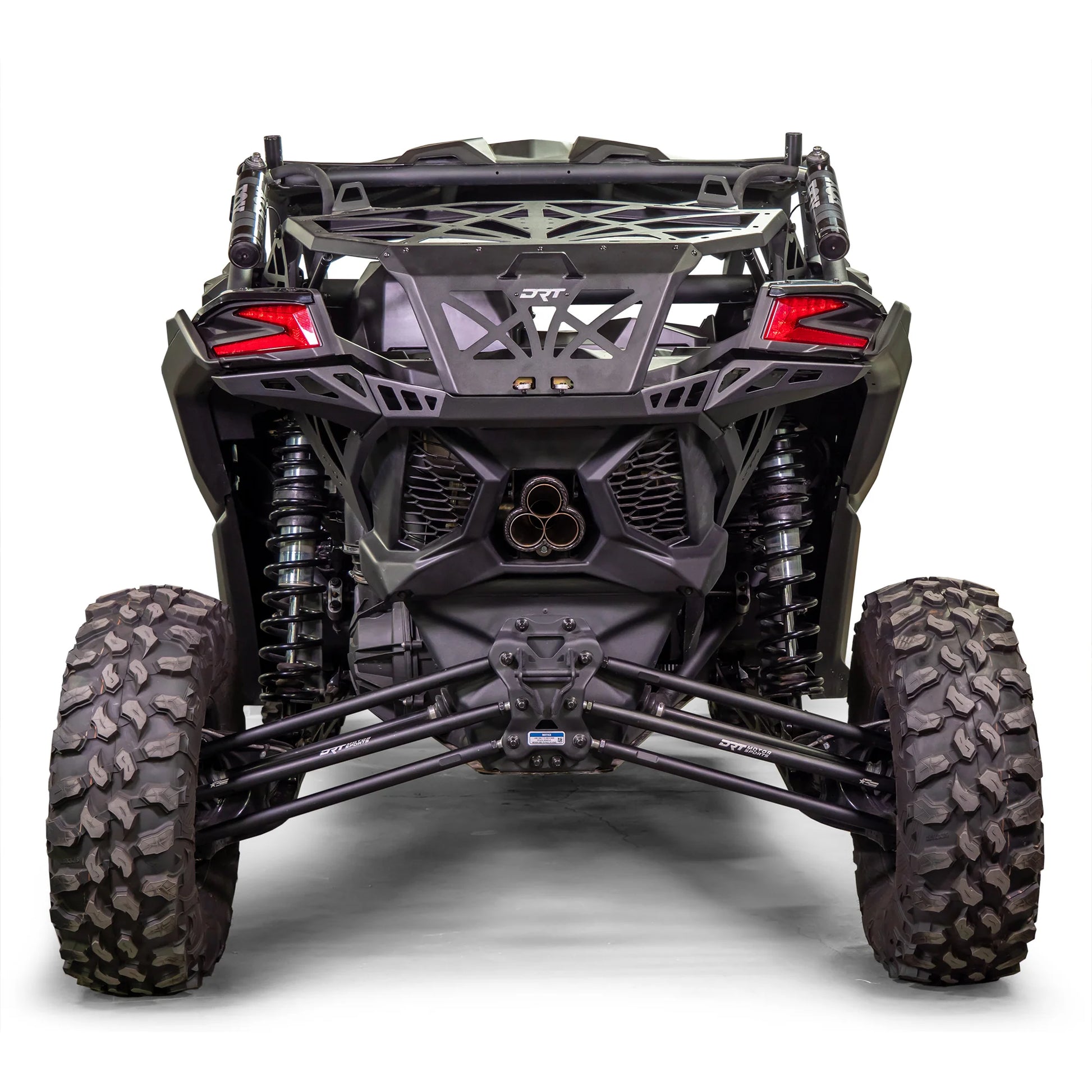 The DRT Motorsports Can-Am Maverick X3 2017+ (all models) Rear Bumper and Tire Carrier System is the ultimate upgrade for X3 riders who want to carry a spare tire and still retain storage space.