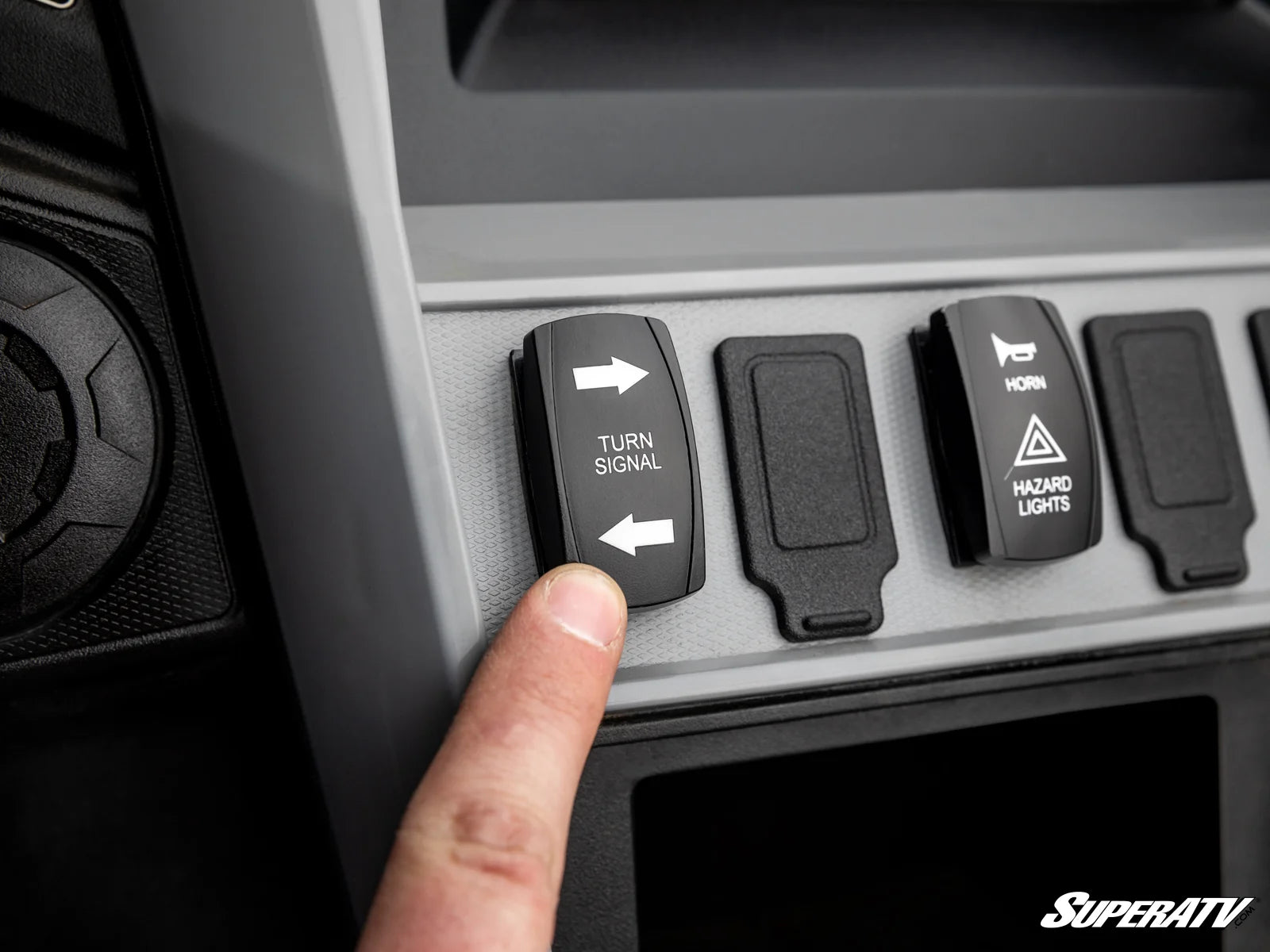 Whether you’re in your car or your UForce, there’s nothing more annoying than leaving your turn signal on. And it’s confusing! With our auto-cancel turn signal kit, you won’t have to worry about manually turning off your blinkers. It has a long or short duration, depending on how long you press the dash-mounted switch.
