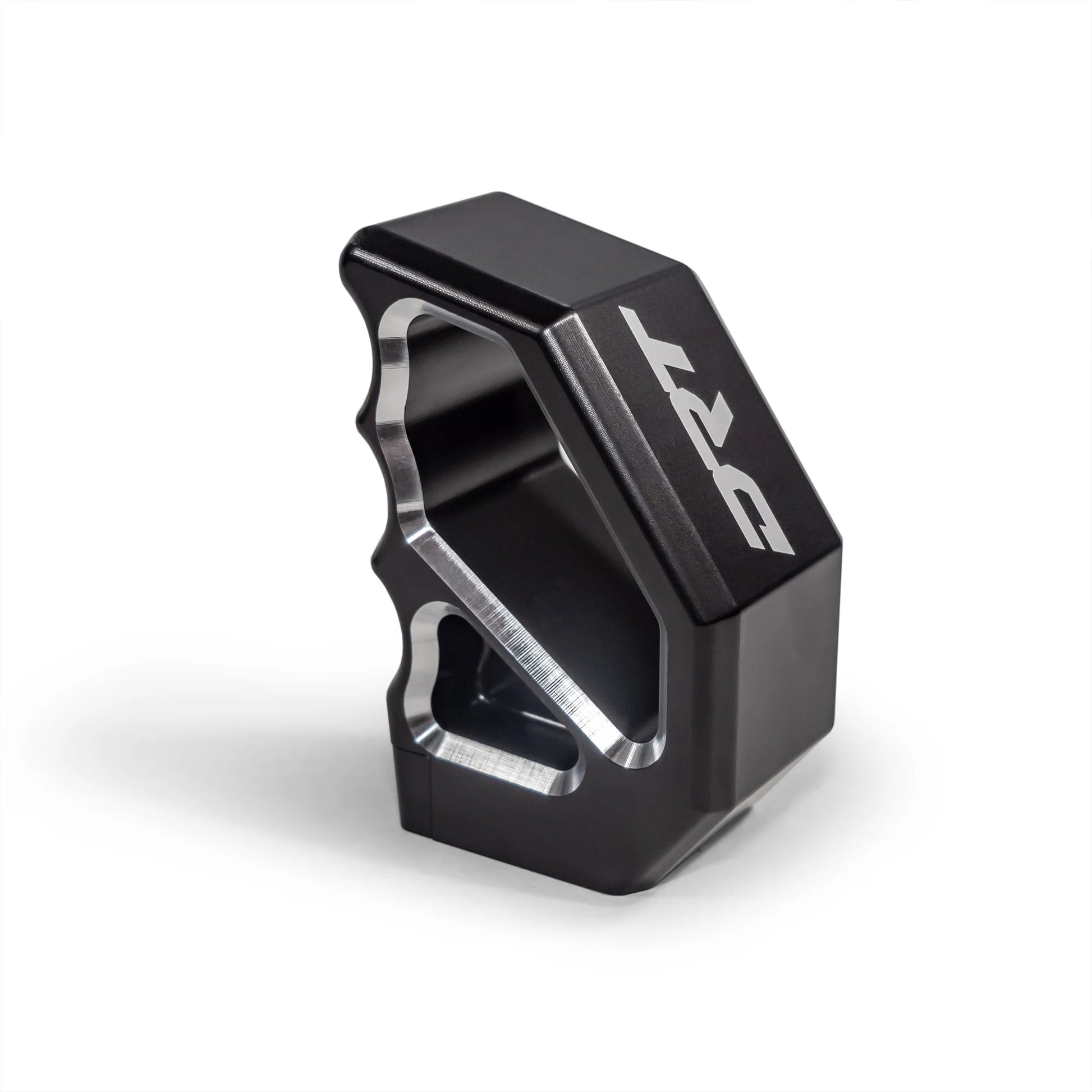 Crafted from solid aerospace-grade 6061-T6 aluminum using precision CNC machining, this shifter is engineered for performance and style. The exterior features a durable mil-spec matte black anodized finish, enhanced with post-machined contrast cuts for a bold, custom look. DRT branding is laser-engraved, adding a distinct touch of quality to the design.