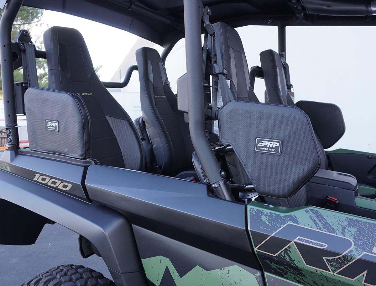 Add extra protection and comfort to your Yamaha Wolverine RMAX and RMAX4. While the plastic bumper guards next to the seats do help you stay inside the vehicle, they aren't the most comfortable thing to bang your shoulder against in rough terrain. That's where PRP's shoulder pads come in handy. They easily slide over those plastic bumpers and provide a soft cushion to those hard hits. Each is made with a thick foam padding covered with durable and puncture resistant marine-grade vinyl that is water resistant.