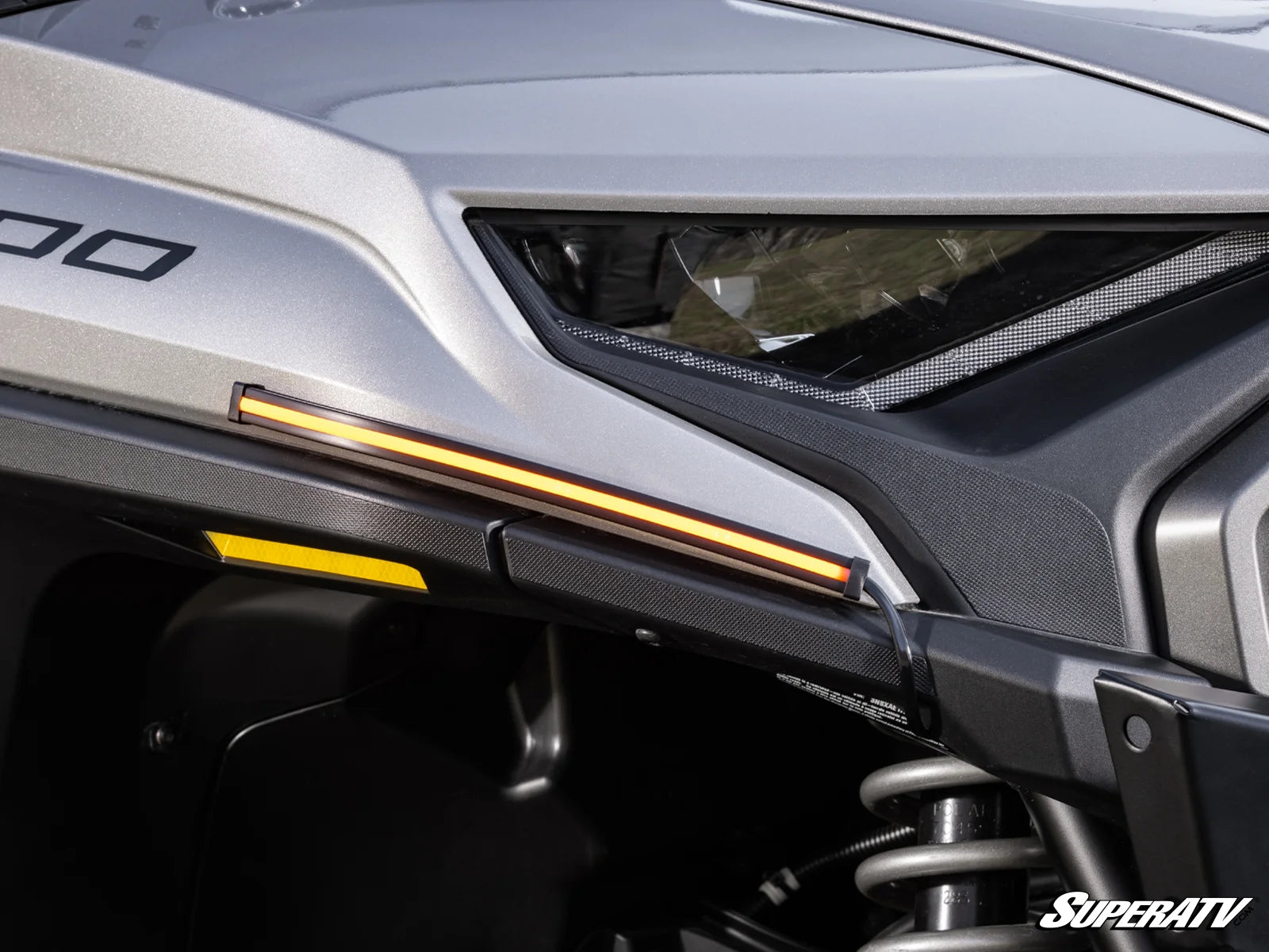 Turn signal kits make you drill holes in your ATV or UTV’s plastic to mount LEDs. If you don’t want to do that, upgrade to SuperATV’s LED Turn Signal Strips. These flexible plug-and-play turn signal strips use 3M automotive-grade adhesive to stick to your machine and include a harness to plug into your SuperATV turn signal kit.