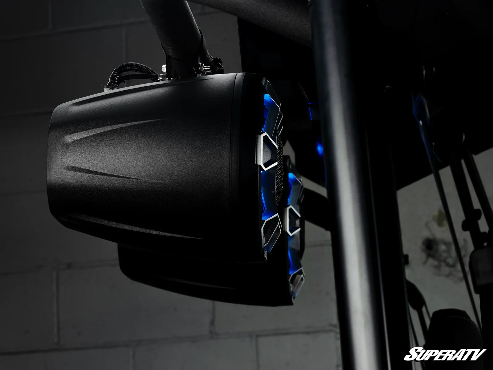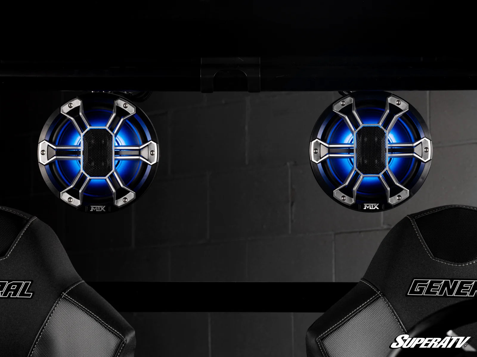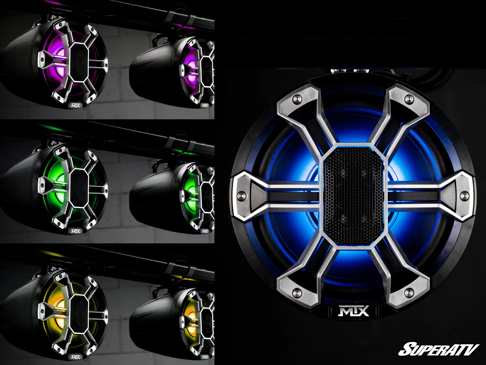 MTX’s UTV speakers will stand out in a croud if you want them to. Hardwire them with your favorite color, or get MTX’s optional MUDLEDC remote for more colors, patterns, and special effects. Customize their colors by disassembling the grille and pods for an easy paint job.