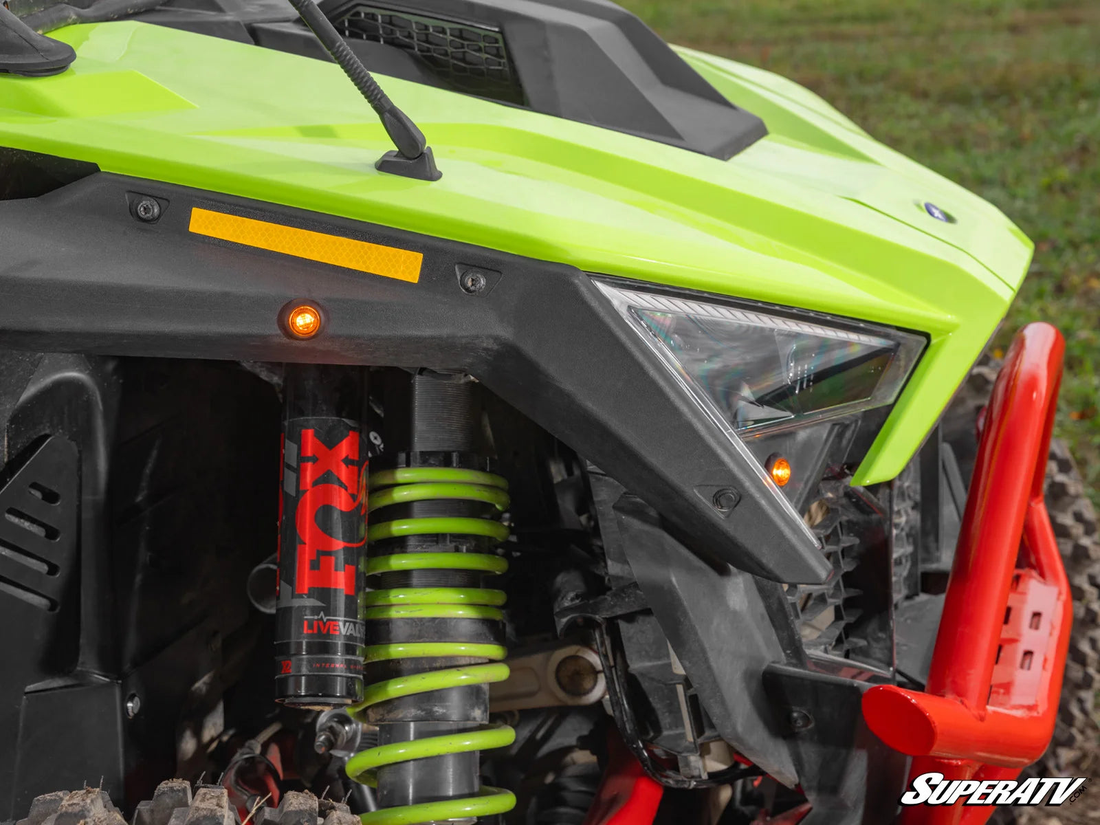 Our Polaris RZR Pro R turn signal kit connects to your stock taillights. The front uses two amber LEDs on each corner, and BlinkTek keeps the front and rear lights blinking simultaneously.