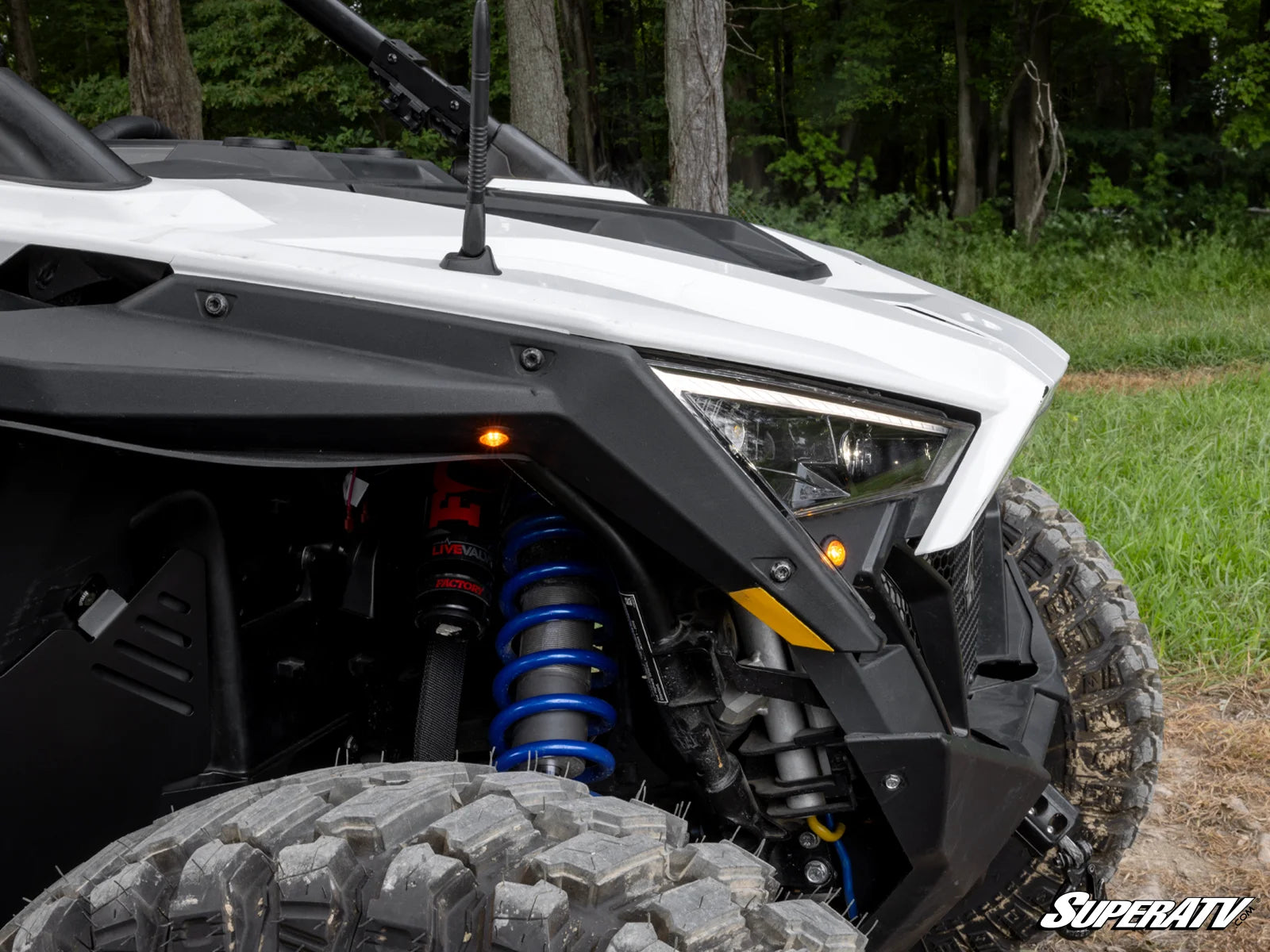 Our kit includes four amber LED lights for the front—two for each front corner. It connects directly to your RZR PRO XP’s rear OEM taillights to turn them into signals too.