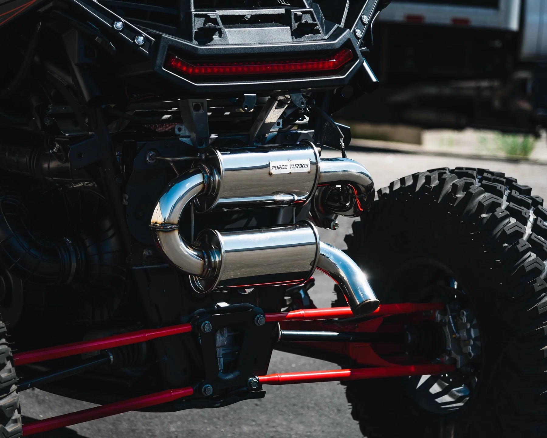 The Force Turbos Polaris RZR RS1 Exhaust is designed not only for great looks and sound, but to also utilize proven performance enhancing strategies. With the initial silencer acting as an expansion chamber that increase exhaust velocity when combined with the scavenging effect of the secondary exhaust.