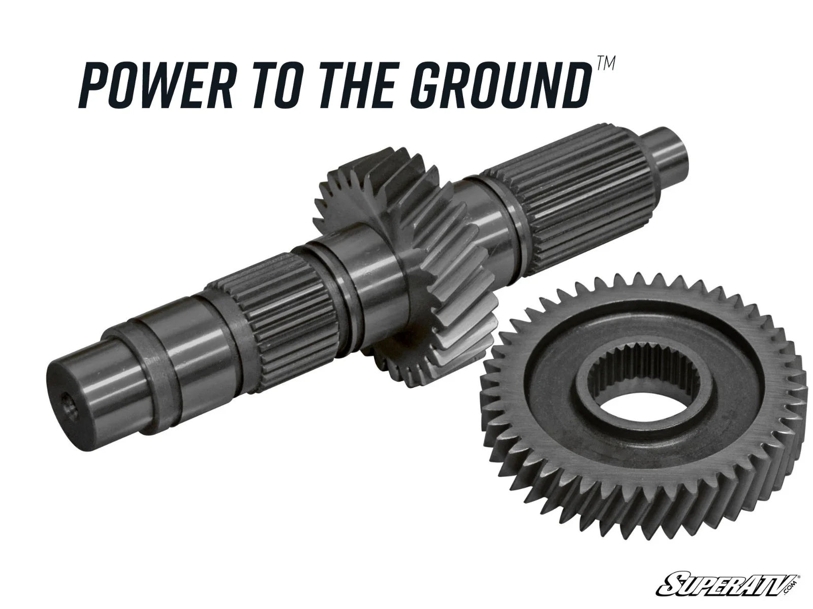 Your Polaris has untapped power hidden right there in your engine, and all you need to get it out is a SuperATV Transmission Gear Reduction Kit. Your transmission is responsible for converting your engine’s power into horsepower and torque. Our 13%, 25%, and 38% gear reductions boost your torque for better acceleration and more power to the ground. That’s what Gear Driven Performance is all about.