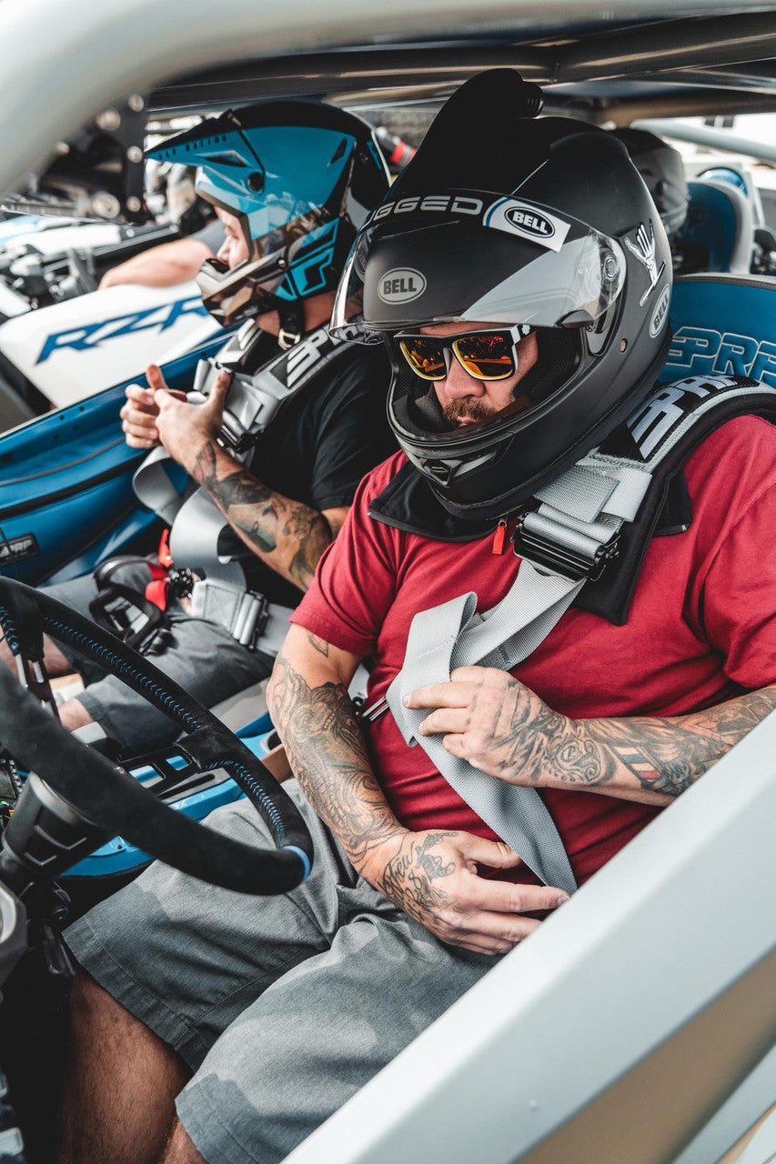 With the shoulder straps sewn to the lap belts, the 4.3 Harness makes it easy to strap in and start riding. This 4 point harness with 3" belts has sewn in pads for comfort, all black hardware for cool styling and EZ adjusters on the shoulders. The EZ adjusters allow you to adjust your shoulder straps quickly and even if they are dirty or muddy. The seat belt also has a removable sternum strap, and a red latch guard on the lap belt. The lap belt bolts in. The shoulder harness and crotch strap can either bolt down or wrap around a roll bar. Warning: Proper installation and consistent use of restraint system is critical to your safety in event of accident. Follow included installation instructions closely.