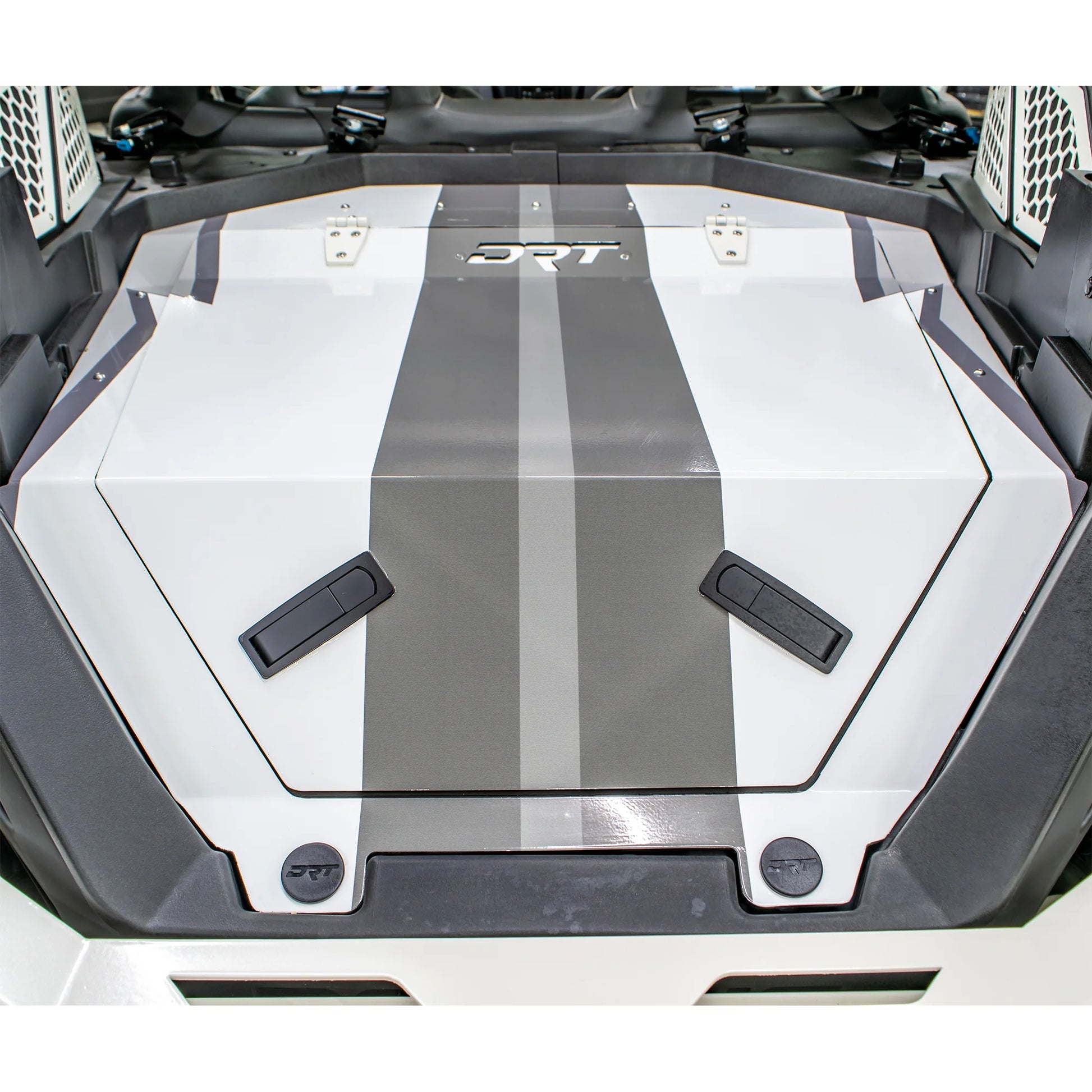 The DRT Motorsports Polaris RZR Pro XP and XP4 Aluminum Storage/Trunk Enclosure is a must for riders who want to carry cargo more securely. The DRT Rear Storage Enclosure has a ceiling height of 10.5” and maintains the full width and length of the factory storage box. The RZRPROTE1 was designed with a .090 thick load-bearing lid for the capability to carry additional cargo on top of the enclosure lid when needed. The DRT Pro XP rear bed enclosure is perfect for riders who want to storage their tool bags, soft coolers, and other off-road essentials securely while riding in any terrain.