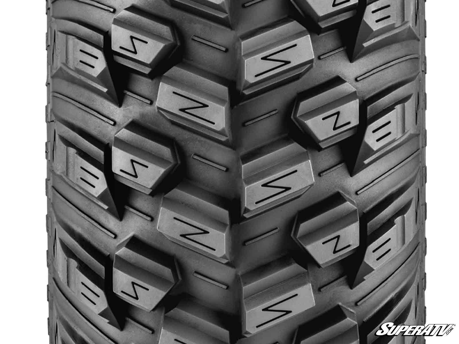 - V-shaped tread provides traction in almost any condition including slick or muddy terrain